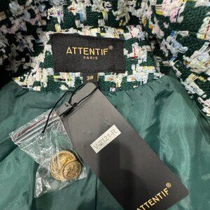 New Attentif Paris Golden Button Knitted Double Breasted Blazer, Size 38/M