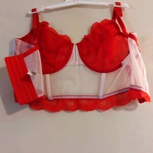 New Auden Large Red & White Lace Intimates Longline Bra New With Tags