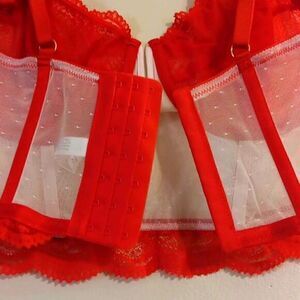 Auden Intimates Red And White Beautiful Lace Longline Bra. This Bra Is Unlined, Soft Stretchy Fabric, Has Underwire, Softboning, Adjustable Straps With 7 Back Hook And Eye Closures.