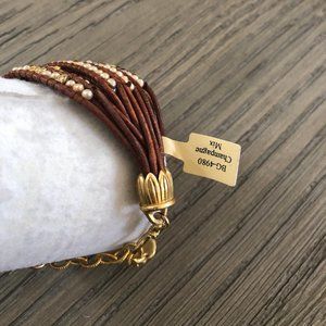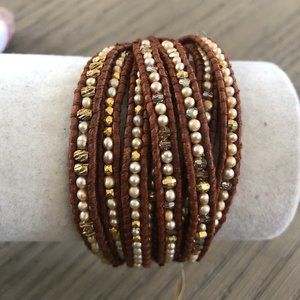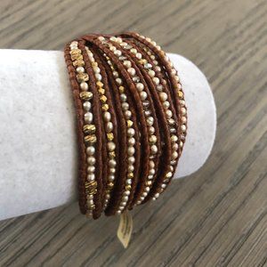 New Authentic Chan Luu Champagne Pearl Mix Multi Strand Single Wrap Bracelet on Brown Leather