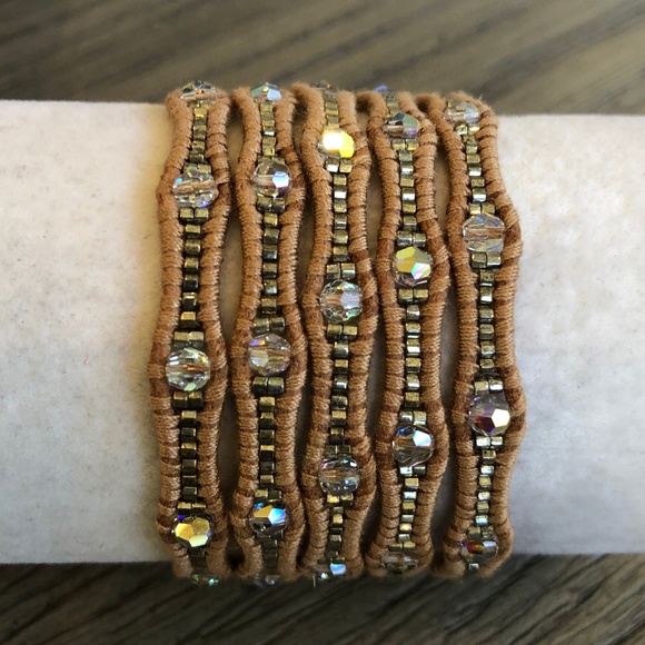 New Auth Chan Luu Crystal AB Five Wrap Bracelet on Beige Leather