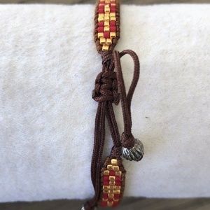New Auth Chan Luu Red Gold Mix Seed Bead Pull Tie