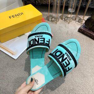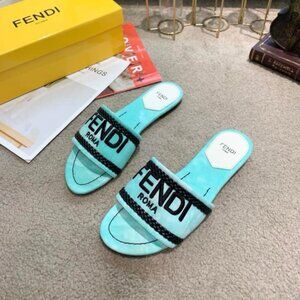 New Auth Fendi Pink Signature Floral Canvas Slide on Flats Sandals🤩🤩