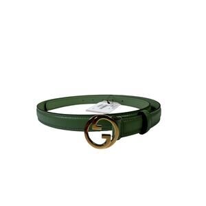 New with tags Gucci Blondie belt in green leather. Interlocking GG buckle in gold-tone metal. 1" width.