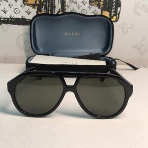 New Authentic Black Aviator Sunglasses GG0159SN 001