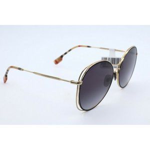 New Authentic Burberry B 3105 1017/8G Oval Gold Sunglasses Gray Gradient Lens(A)