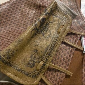 Layered-look bottoms with golden print trims Contrasting waistband with metal hoop detail