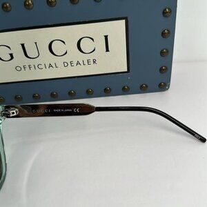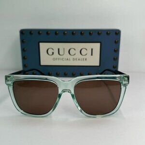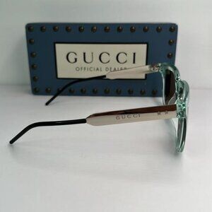 Frame Material: Plastic Frame Color: Green Detailed Frame Color: Green-Silver-Brown Frame Shape: Rectangular Lens Color: Brown Detailed Lens Color: Solid Brown Lens Protection: 100% UV Protection Polarization: Non-Polarized Lens Width: 56 mm Arm Length: 145 mm Bridge Width: 16 mm PRODUCT DETAILS SKU: GG0976S-002-56 Brand Name: Gucci Collection: Fashion