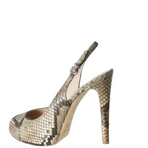 These stylish shoes feature a 5" high heel, slingback style, and are crafted from exotic snakeskin material. The shoes are designed for women and are characterized by their unique multi-color design and medium width. These luxury Italian-made pumps are sure to make a statement with their brand prestige and exquisite craftsmanship.