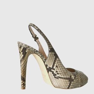 These stylish shoes feature a 5" high heel, slingback style, and are crafted from exotic snakeskin material. The shoes are designed for women and are characterized by their unique multi-color design and medium width. These luxury Italian-made pumps are sure to make a statement with their brand prestige and exquisite craftsmanship.