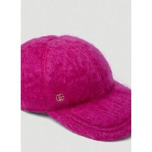 New Authentic Gucci GG Logo Mohair Pink Fuxia Baseball Hat Size M
