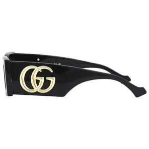 Gucci Sunglasses.. Color code: 001. Shape: Rectangular. Lens Width: 53 mm. Lens Bridge: 21 mm. Arm Length: 145 mm. 100% UV protection. Non-Polarized. Frame Material: Recycled Acetate. Frame Color: Black. Lenses Type: Grey. Rim Style: Full-Rim.. Gucci Grey Rectangular Sunglasses GG1425S 001 53.