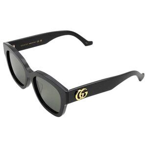Gucci Sunglasses.. Color code: 001. Shape: Square. Lens Width: 54 mm. Lens Bridge: 18 mm. Arm Length: 150 mm. 100% UV protection. Non-Polarized. Frame Material: Recycled Acetate. Frame Color: Black. Lenses Type: Grey. Rim Style: Full-Rim.. Gucci Grey Square Ladies Sunglasses GG1550SK 001 54.