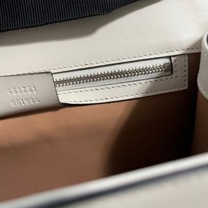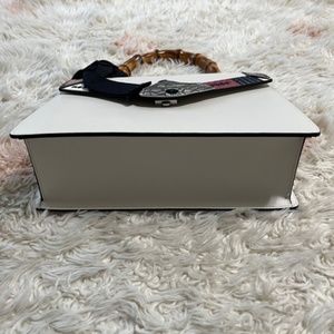 This visual stunner with the grosgrain bow detail and a bamboo top handle.