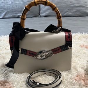 The textured snake head with piercing crystal stones set in the eyes is something you couldn't dare miss This beauty has a detachable and adjustable leather shoulder strap.