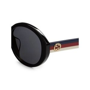 New authentic Gucci chic round sunglasses with logo detailing at the temples. Runs slightly wide. $375 Retail.