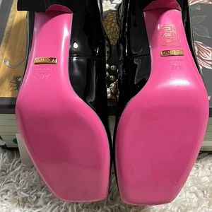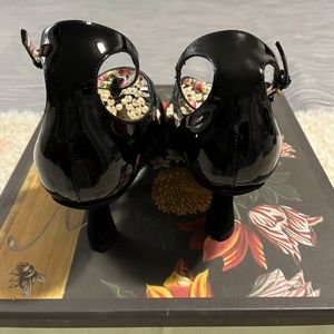 Patent leather square-toe Mary Jane pumps with two adjustable buckle straps