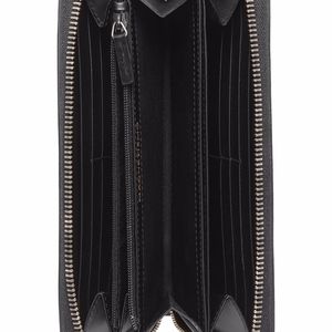 Interior zip pocket; currency and slip pockets; 12 card slots