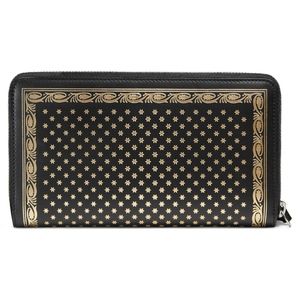 Authentic Guccy Logo Moon & Stars Leather Zip Around Wallet