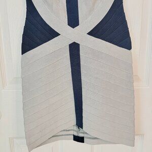 New Authentic Hervé Leger Bandage Dress. Bodycon mini dress. Backless. Zip with hook and eye closure. The hype of the 2010s. The It-Girl dress for girls like Rihanna and the Kardashians. It is back in style. Such a fun party dress. Bandage dresses retail for over $600, get a steal here. This is new with the tags. Color is Pearl Grey & Carbon Blue.