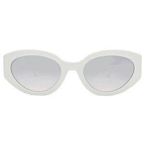 Marc Jacobs Sunglasses.. Color code: 0HYM/IC. Shape: Cat Eye. Lens Width: 54 mm. Lens Bridge: 21 mm. Arm Length: 145 mm. 100% UV protection. Non-Polarized. Frame Material: Plastic. Frame Color: White Grey. Lenses Type: Grey Mirrorshade Silver. Rim Style: Full-Rim.. Marc Jacobs Grey Mirrorshade Silver Cat Eye Ladies Sunglasses MARC 694/G/S 0HYM/IC 54.