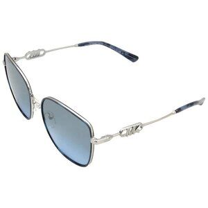 Michael Kors Sunglasses. Series Empire Square 2.. Color code: 10158F. Shape: Square. Lens Width: 56 mm. Lens Bridge: 18 mm. Arm Length: 140 mm. 100% UV protection. Non-Polarized. Frame Material: Metal. Frame Color: Silver/Blue. Lenses Type: Navy Gradient. Rim Style: Full-Rim.. Michael Kors Empire Square 2 Navy Gradient Ladies Sunglasses MK1129J 10158F 56.