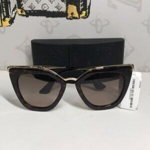 Prada PR53S 2AU-3D0 – Havana Brown Gradient Cat-Eye Sunglasses Elevate your accessory game with these Prada PR53S 2AU-3D0 sunglasses, featuring a chic cat-eye silhouette in a rich Havana tortoiseshell frame. The brown gradient lenses offer 100% UV protection, combining style and functionality. Details: • Frame Color: Havana (Tortoiseshell) • Frame Material: Acetate • Lens Color: Brown Gradient • Lens Width: 52 mm • Bridge Width: 21 mm • Temple Length: 140 mm • Shape: Cat-Eye • Gender: Women’s • UV Protection: 100% UVA/UVB • Includes: Original case and cleaning cloth Condition: New with tags