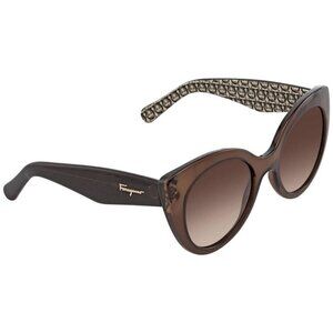 Salvatore Ferragamo Sunglasses.. Color code: 210. Shape: Butterfly. Lens Width: 54 mm. Lens Bridge: 21 mm. Arm Length: 140 mm. 100% UV protection. Frame Material: Plastic. Frame Color: Crystal Brown. Lenses Type: Brown Gradient. Rim Style: Full-Rim.. Salvatore Ferragamo Brown Gradient Butterfly Ladies Sunglasses SF964S 210 54.