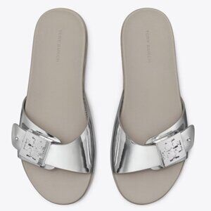 New, Authentic TORY BURCH Silver Gray MELLOW SLIDE Slippers Sandals Shoes US 10
