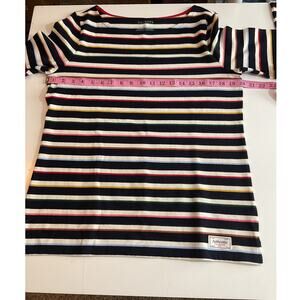 Authentic Talbots Shirt Womens M Blue Multi Striped Cream Effortless Jersey Knit Top
