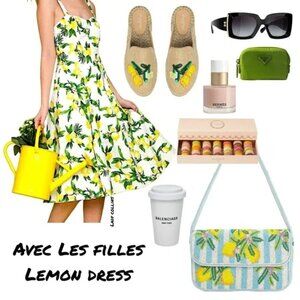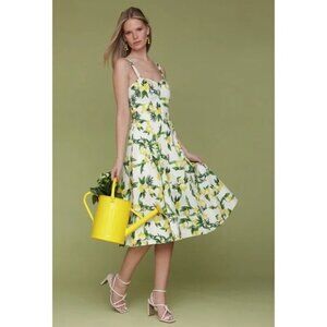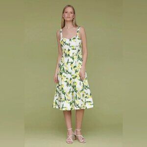 New With Tag Avec Les Filles Lemon Print Sweetheart Midi Dress