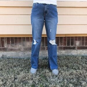 New! Avec Les Filles Split Hem High Waist Straight Leg Jeans