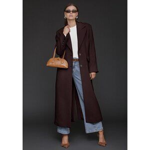New Avec Les Filles Strong Shoulder Hourglass Maxi Coat Dulse Brown XS