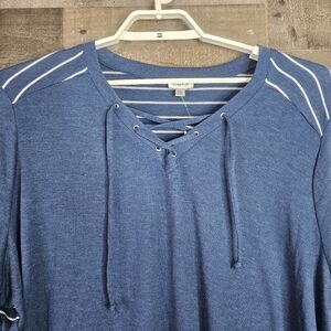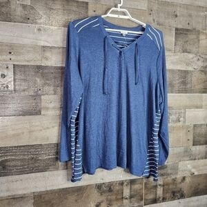 New Avenue Women's Plus Nautical Look Knit Top V-Neckline Drawstring Tie