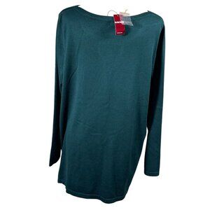 New Avenue Women's Sweater Hunter Green Keyhole Silver Stud Size 18/20