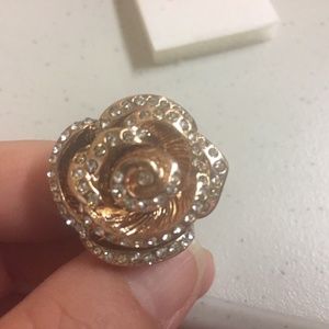 New in Box!Just the piece to brighten your outlook, with stunning swirls of blingy, glass rhinestone-rimmed rose goldtone petals