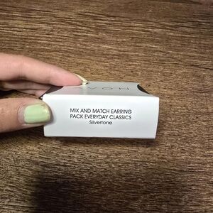 New Avon silvertone earrings 5 pairs, box and care instructions included