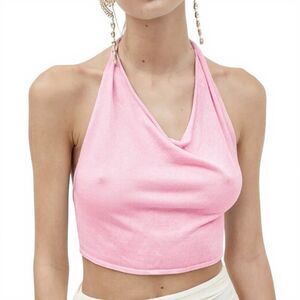 Smoke free, pet free warehouse. New with tags, retail $220. Light baby bubblegum pink color. Soft knit. Halter neck. Tied back.