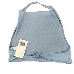 New Aya Muse Cinnabar Knit Tied Draped Halter Crop Top XXS Light Sky Blue