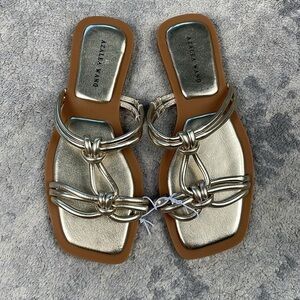 New Azalea Wang Stetson Sandals Gold Metallic Gladiator Strappy Flats Sz 7
