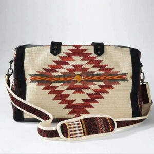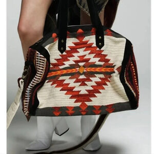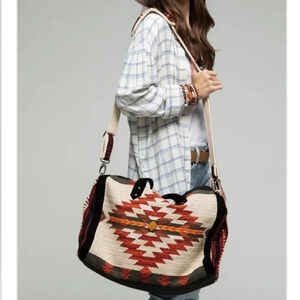 Style Boho Southwestern Aztec Tribal Coachella Bohemian Western Woven Free People Anthropologie Yellowstone Weekender Duffle Duffel Travel Overnight Bag Lake Mountains Beach Vintage Hippie Music Festival vibes