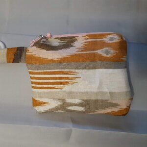 New Aztec Clutch travel Hanging make-up bag Mustard Pink 6" Wristlet Coin Purse