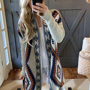 New Cozy Native Tribal Print Boho Western Long Blanket Cardigan Sweater.