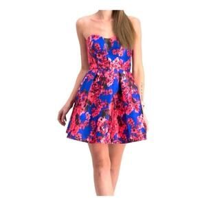 Brand New wihtout Tags New B. Datlin Strapless Sweetheart Red Blue Floral Print Mini Dress Party Cocktail MSRP: $89