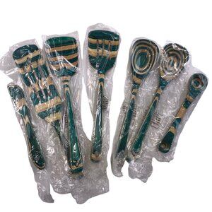 New BALTIQUE Mykonos Collection 7-Piece Utensil Set. Tan / Blue Striped Spatula