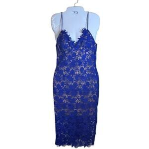 New BARDOT Tayla Cobalt Blue Lace Cocktail Sheath Midi Dress Women's Sz 6