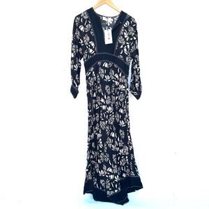 New BA&SH Aude Dress Black White BASH Medium Maxi Long Sundress Viscose Medium