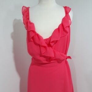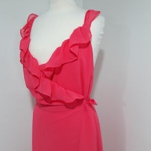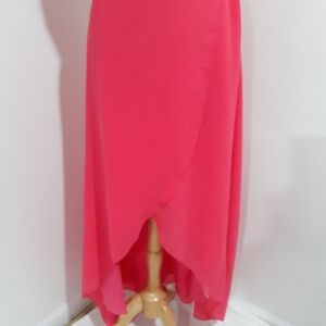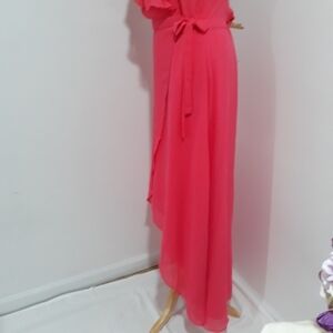 New BB Dakota RSVP Hot Pink wrap rufle high low gown NWT dress size Large