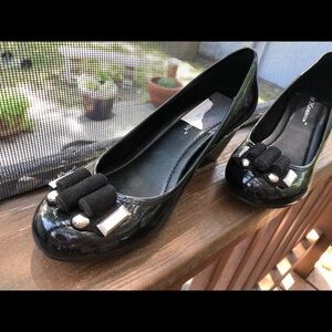 New BCBG Black Patent Leather Wedges 5.5