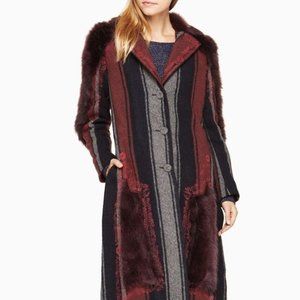 New Gorgeous Runway Statement Coat. Single-breasted with graphic stripes and patches of Toscana 100% real fur. SOLD-OUT. New with tags. NOTE" Is size XS But it runs large and can be perfectly adjusted to size Small. REASONEABLE OFFERS WELCOME.
